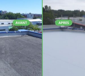Image avant / après réfection toiture bitume en membrane PVC